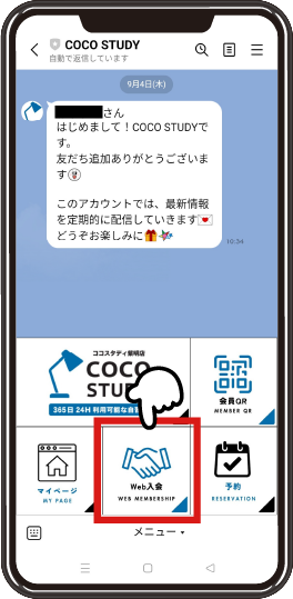 LINE公式アカウントのトーク画面から「WEB入会」をタップ!